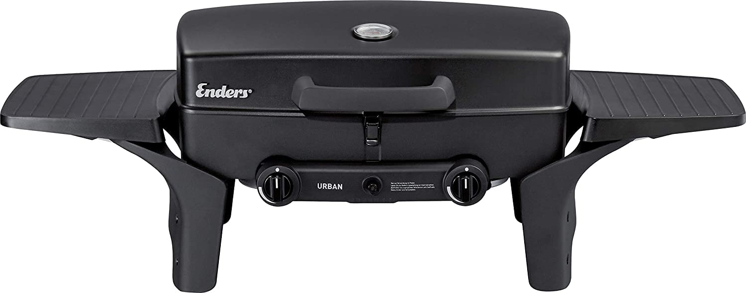 Enders Urban Barbacoa de gas portátil, barbacoa de sobremesa, Parrilla Gas 2 Quemadores con Tapa, Termómetro y Estantes Laterales Abatibles, BBQ Gas para camping jardín exterior, 30 mbar #209533